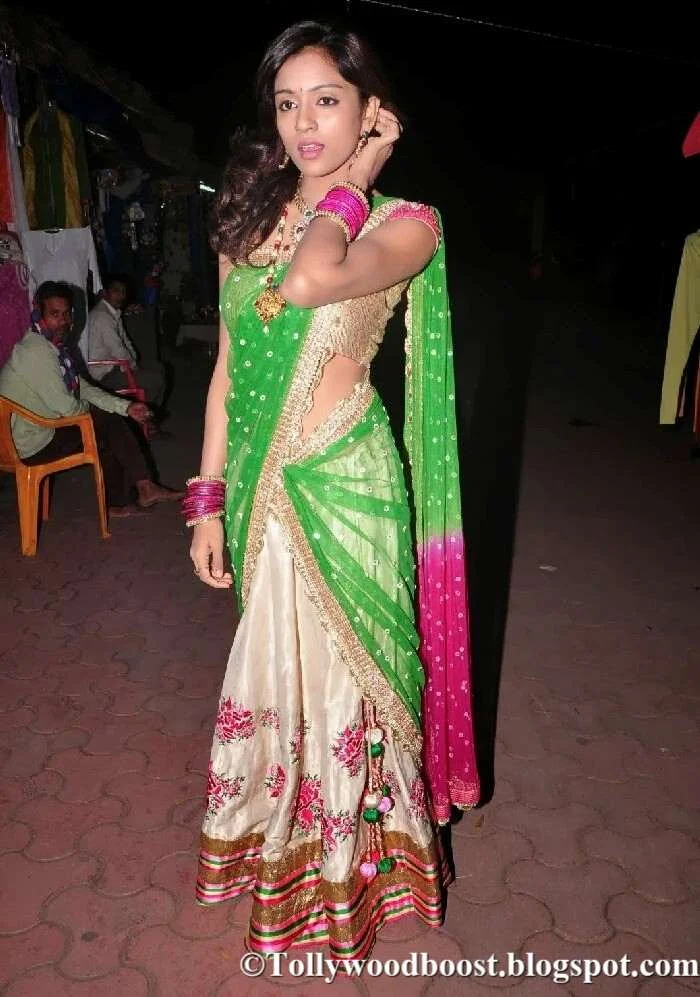 Beautiful Indian Girl Model Actress Vithika Sheru In Green Half Saree