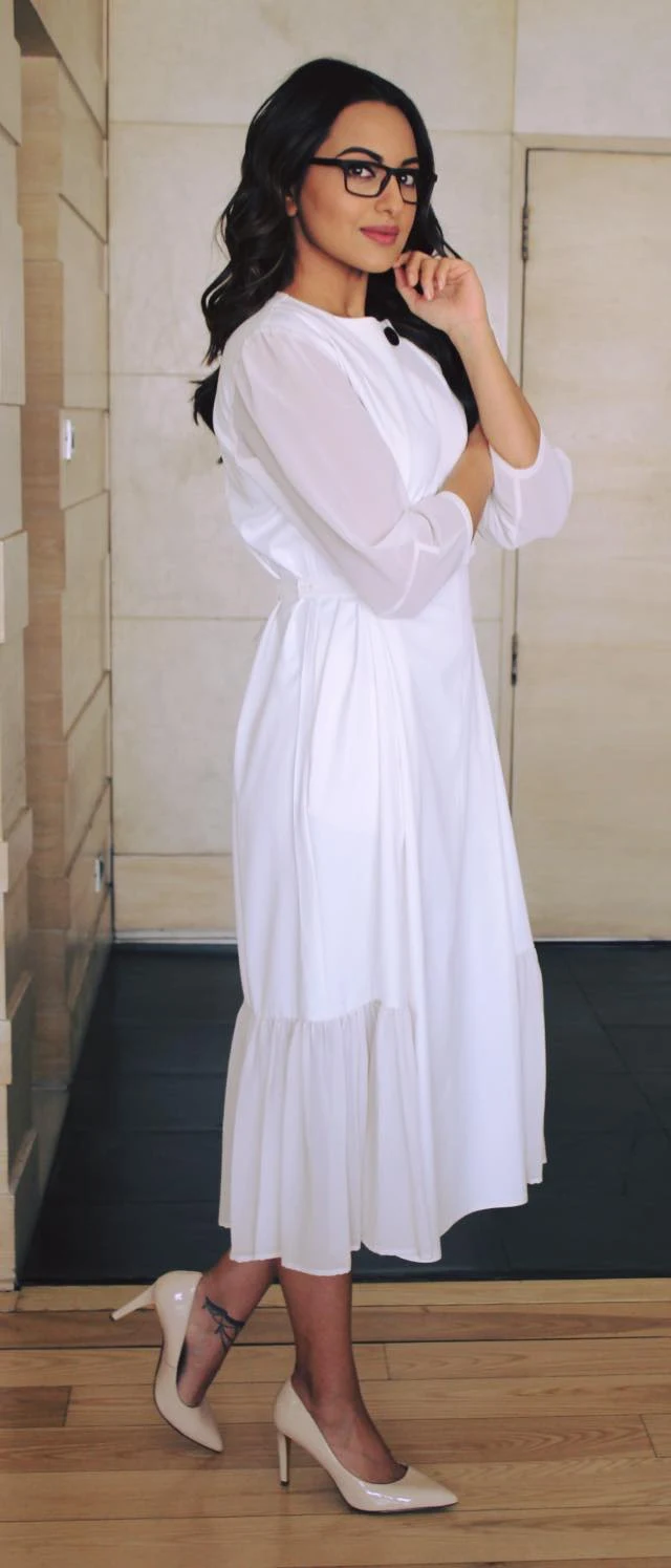 Indian Girl Sonakshi Sinha Photo Shoot In White Skirt With Glass