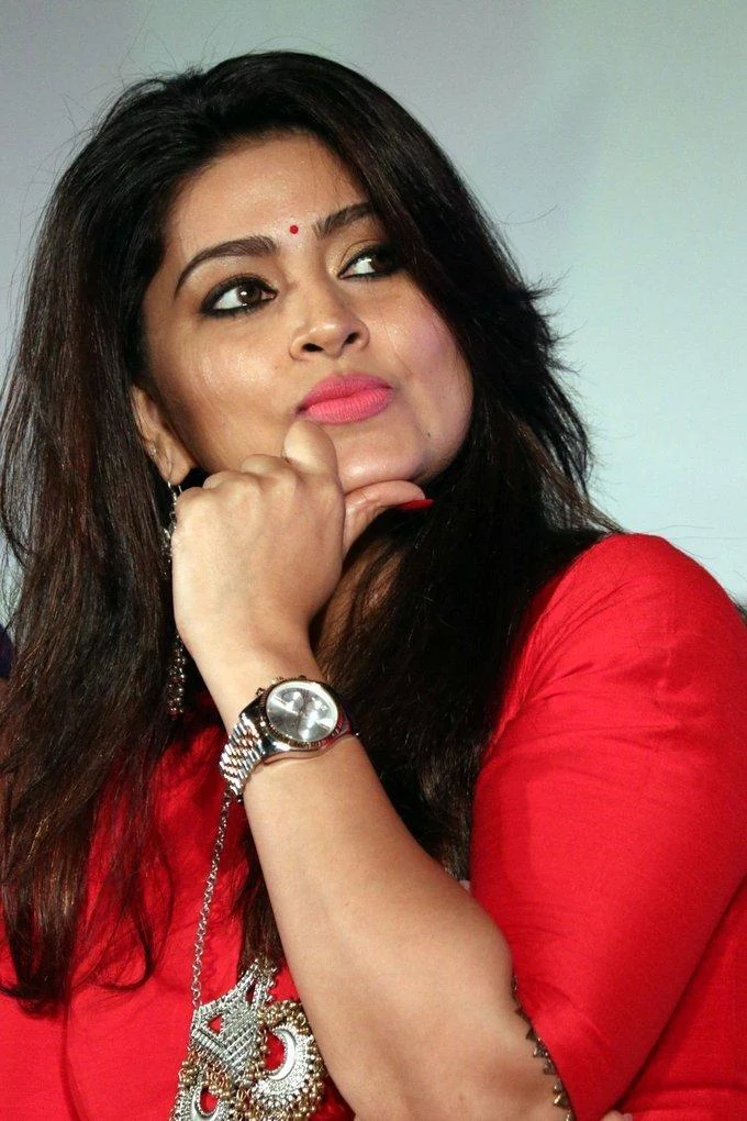 Beautiful South Indian Queen Sneha Smiling Face Close Up In Red Dress
