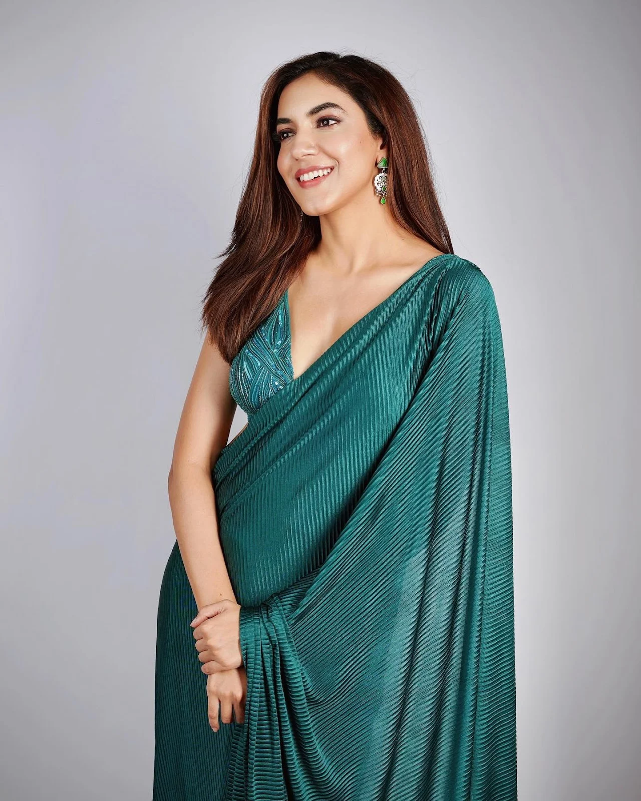 South Indian Actress Ritu Varma in Sleeveless Green Saree