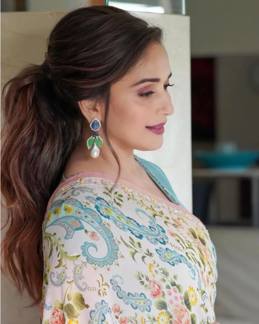 Indian Actress Madhuri Dixit in Traditional Blue Saree