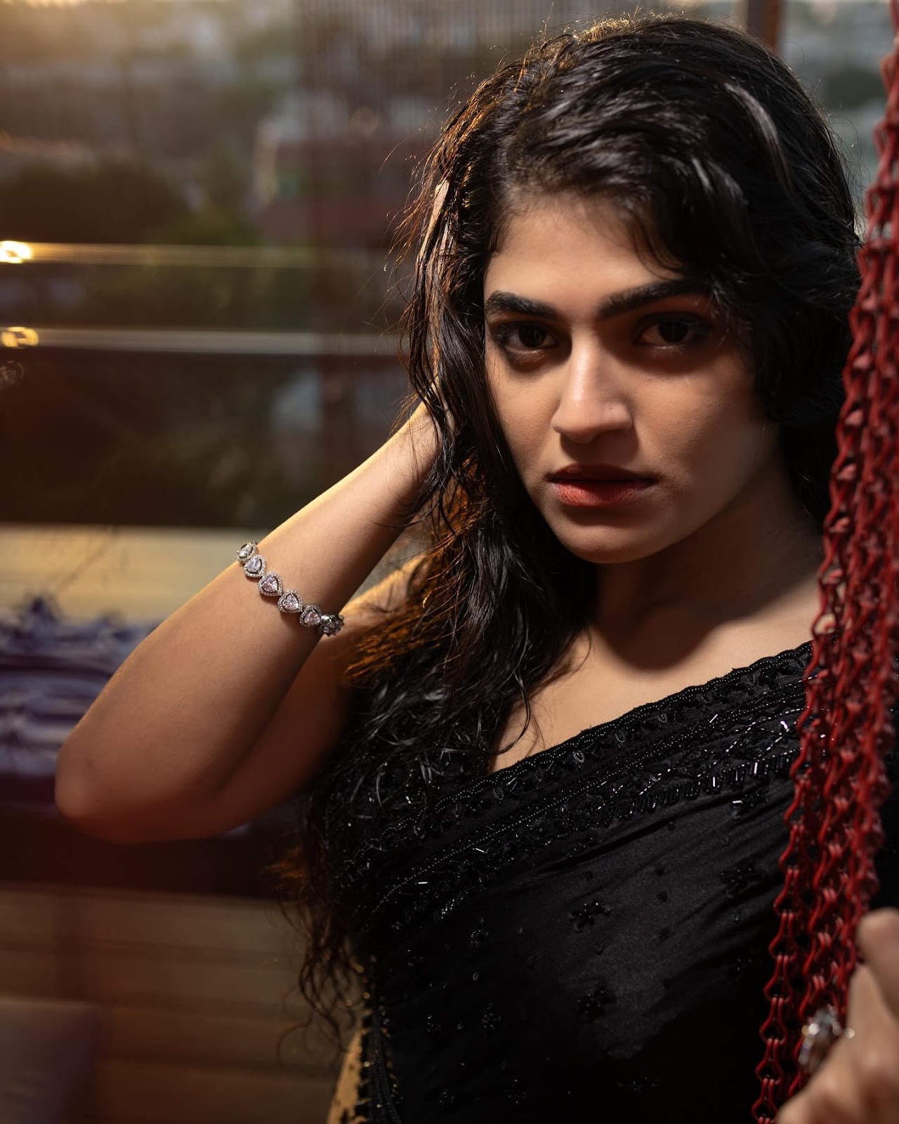 Actress Sangeerthana Vipin In Black Saree Designer Blouse