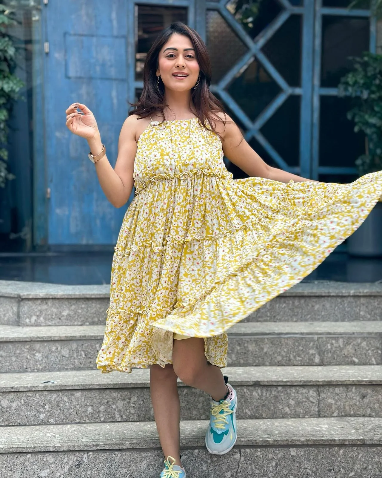 Falaq Naaz Wearing Yellow Sleeveless Gown