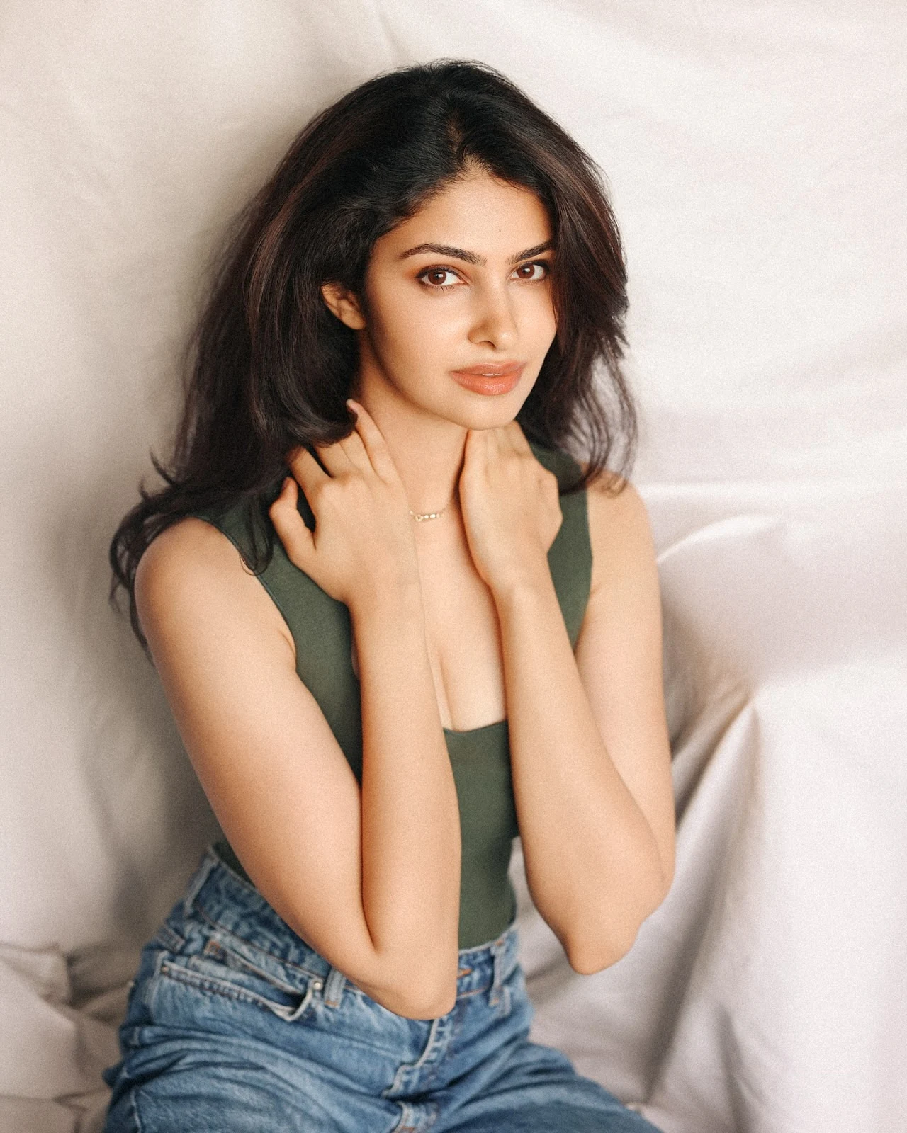 Manasa Varanasi, the elegant Indian model and actress, looked effortlessly chic wearing a green top and blue jeans. With her long hair, radiant smile, and graceful presence, she effortlessly captured attention in this simple yet stylish outfit.